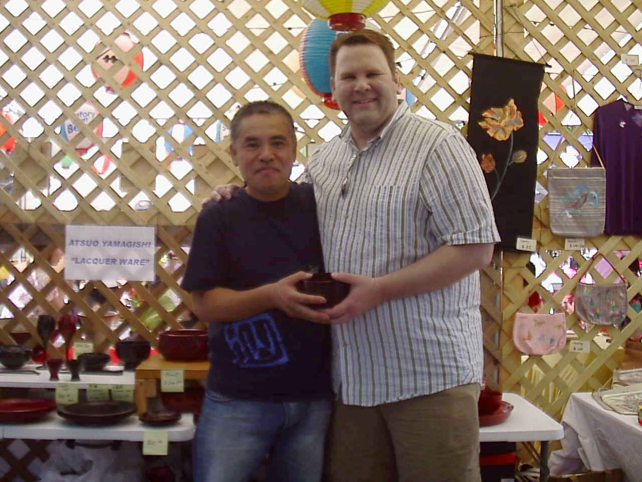 虹塗りの椀とその他片口やサーバーも買ってくれた、日本円で数万円の購入で嬉しかった