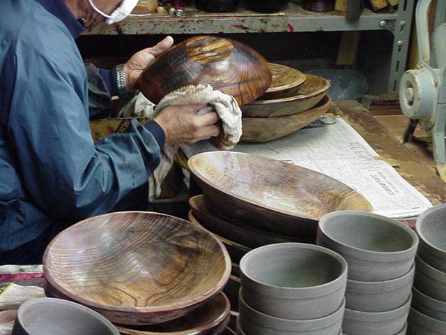 木固めや拭き漆の様子です。
