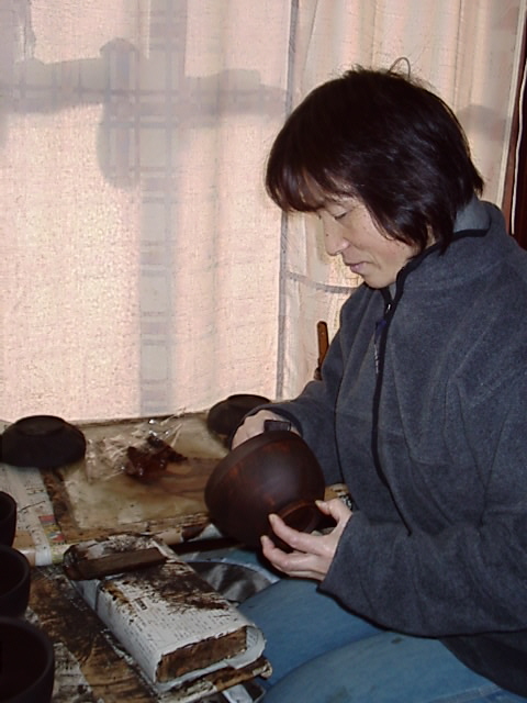 生漆に地の粉(土を焼いて粉にしたもの)や