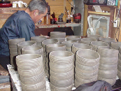 研ぎの工程も1個1個手作業です。 この時、不良品がないか検品もしています。 |