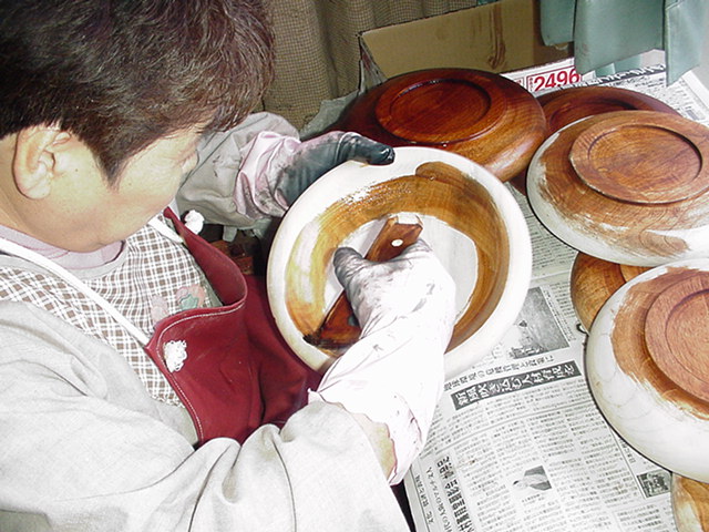 これは木地に生漆(漆の木から採った、そのままの漆)を染み込ませます。