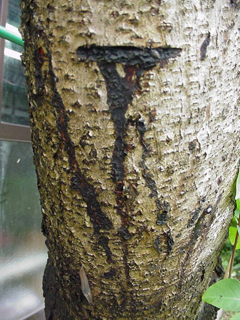 漆の木にキズを付け、漆が流れて固まった様子です。黒く見えますが、実は漆は半透明であり、